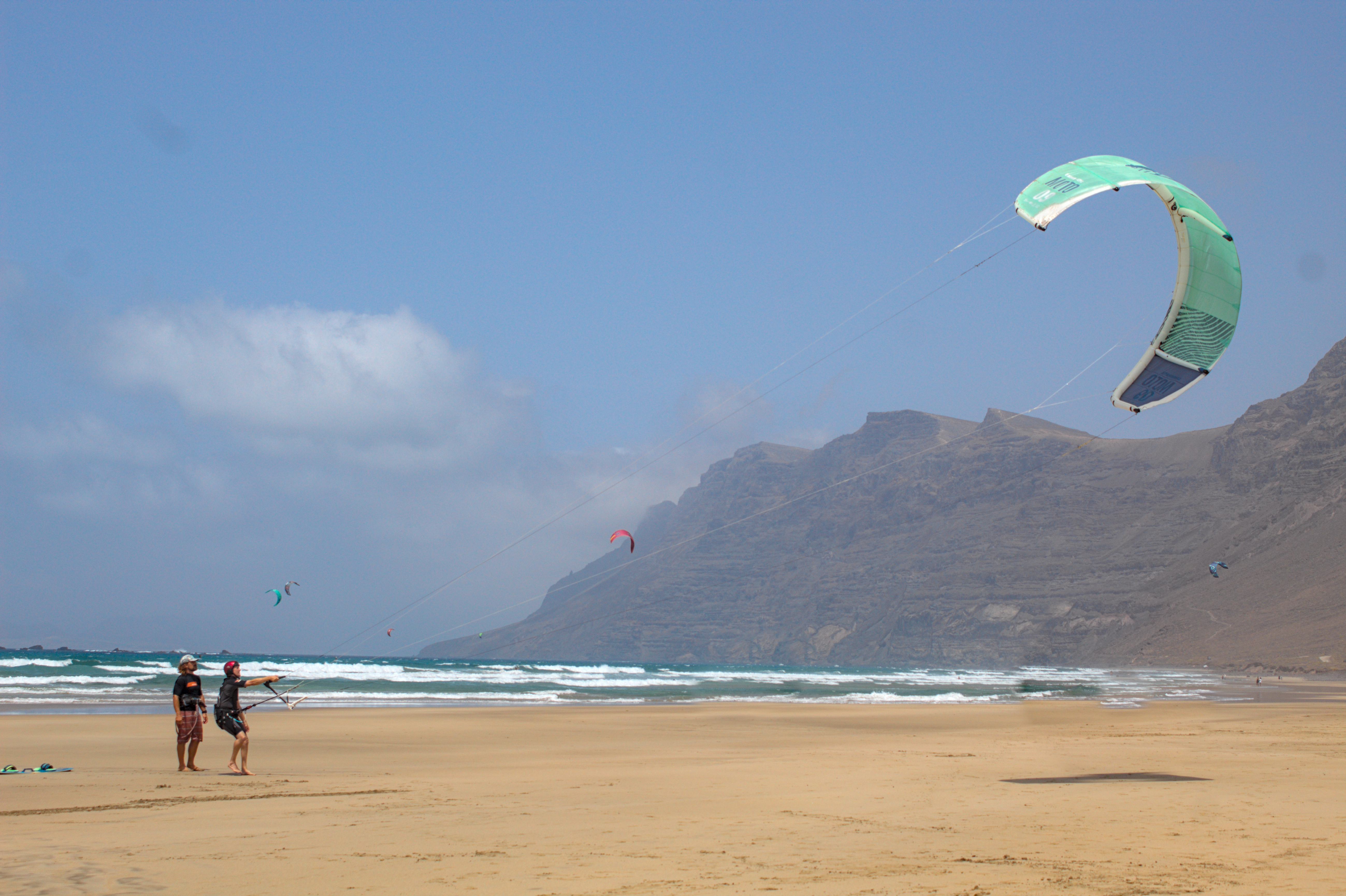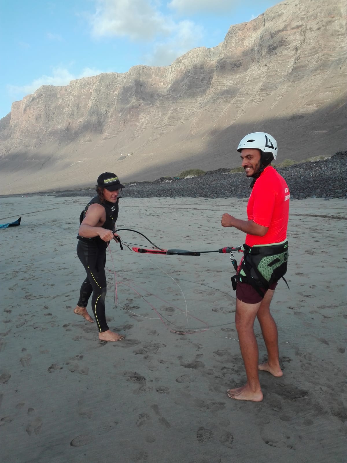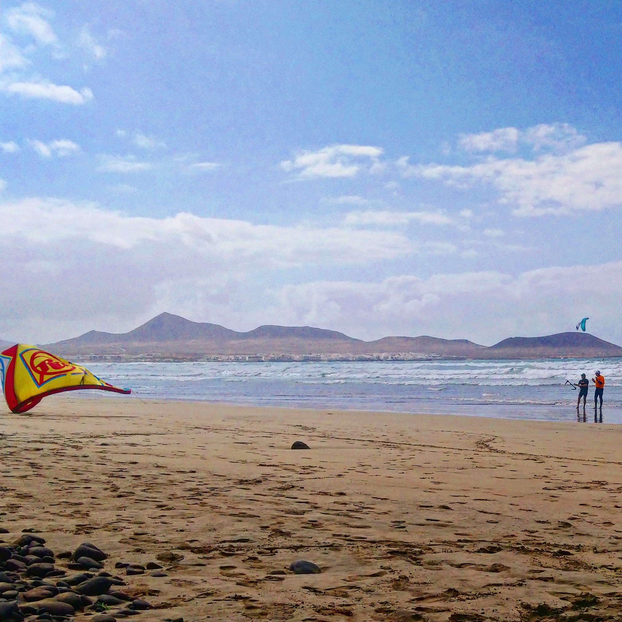 Surrounded by volcanoes and the Atlantic Ocean, Lanzarote and his beaches, like caleta de Famara, on the Macaronesian Canary islands, most southern territory of Europe. We have nice wind conditions all year round with up to 80% windy days on summer months (April - October) with trade winds and mellow waves. Whether you want to try a new sport or you are an experienced kiter already, we have the right spot for you. We are more than a regular kitesurf school. We are kiters sharing our passion and knowledge of water sports with people that want to become like us. We'll be happy to introduce you to our big worldwide community of sailors. Join our team of wind chasers and change the way you look to the elements. Fill up our contact form or follow us on Instagram and Facebook .