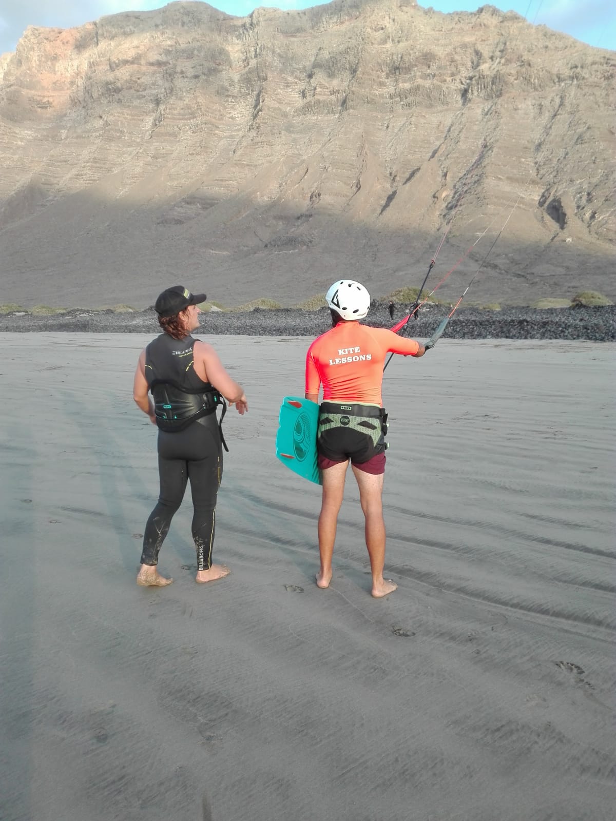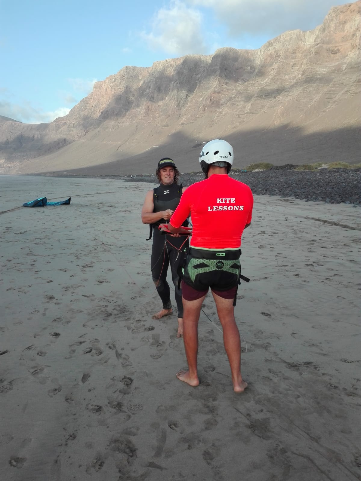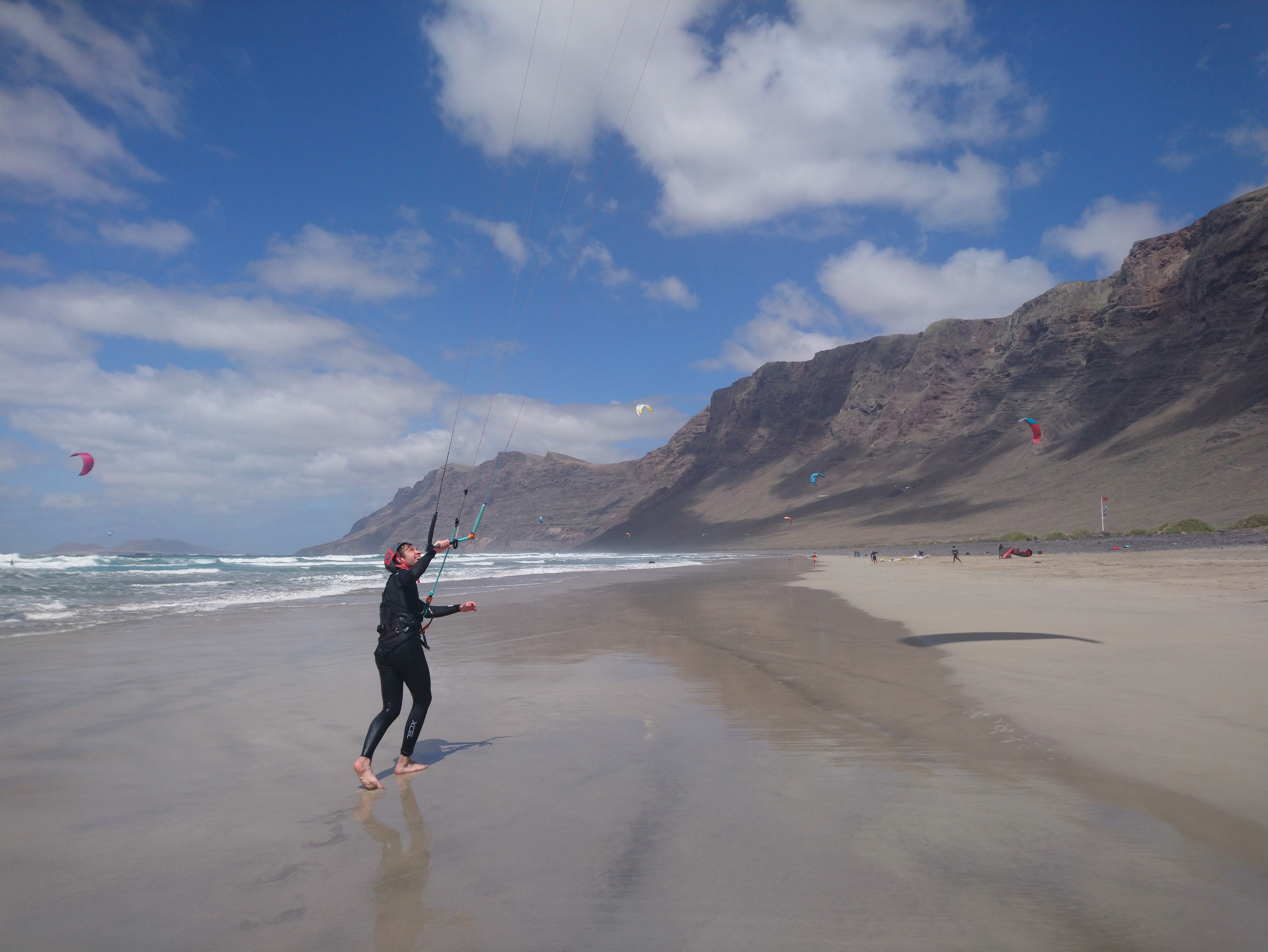 Surrounded by volcanoes and the Atlantic Ocean, Lanzarote and his beaches, like caleta de Famara, on the Macaronesian Canary islands, most southern territory of Europe. We have nice wind conditions all year round with up to 80% windy days on summer months (April - October) with trade winds and mellow waves. Whether you want to try a new sport or you are an experienced kiter already, we have the right spot for you. We are more than a regular kitesurf school. We are kiters sharing our passion and knowledge of water sports with people that want to become like us. We'll be happy to introduce you to our big worldwide community of sailors. Join our team of wind chasers and change the way you look to the elements. Fill up our contact form or follow us on Instagram and Facebook .